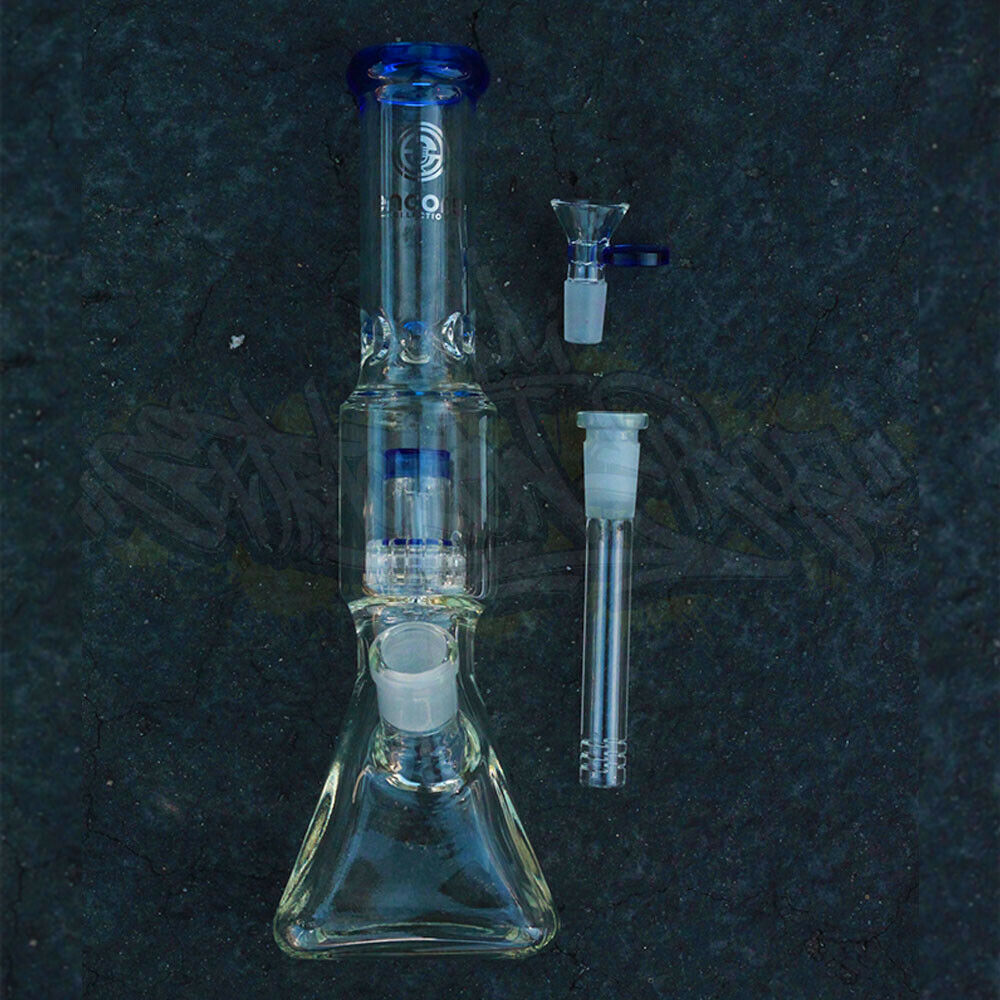 Handcrafted Matrix Square Beaker from the highest quality thick borosilicate glass, our full-sized 12” Quad Base Beaker Water Pipe provides massive hits in a convenient and well-designed package.