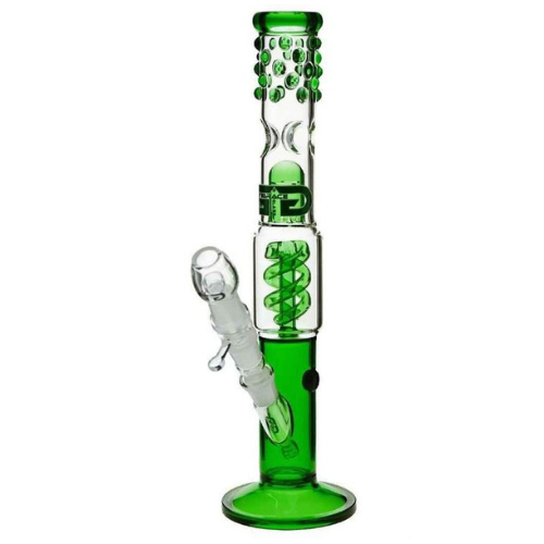 This 14″ tall Slender Sarah comes w/ a coil condenser perc, and everything shown in the picture! A free flower bowl, attatchment, glass nail + hood ! The joint sizes are all 14.5mm, and you know the glass is 6mm thick!